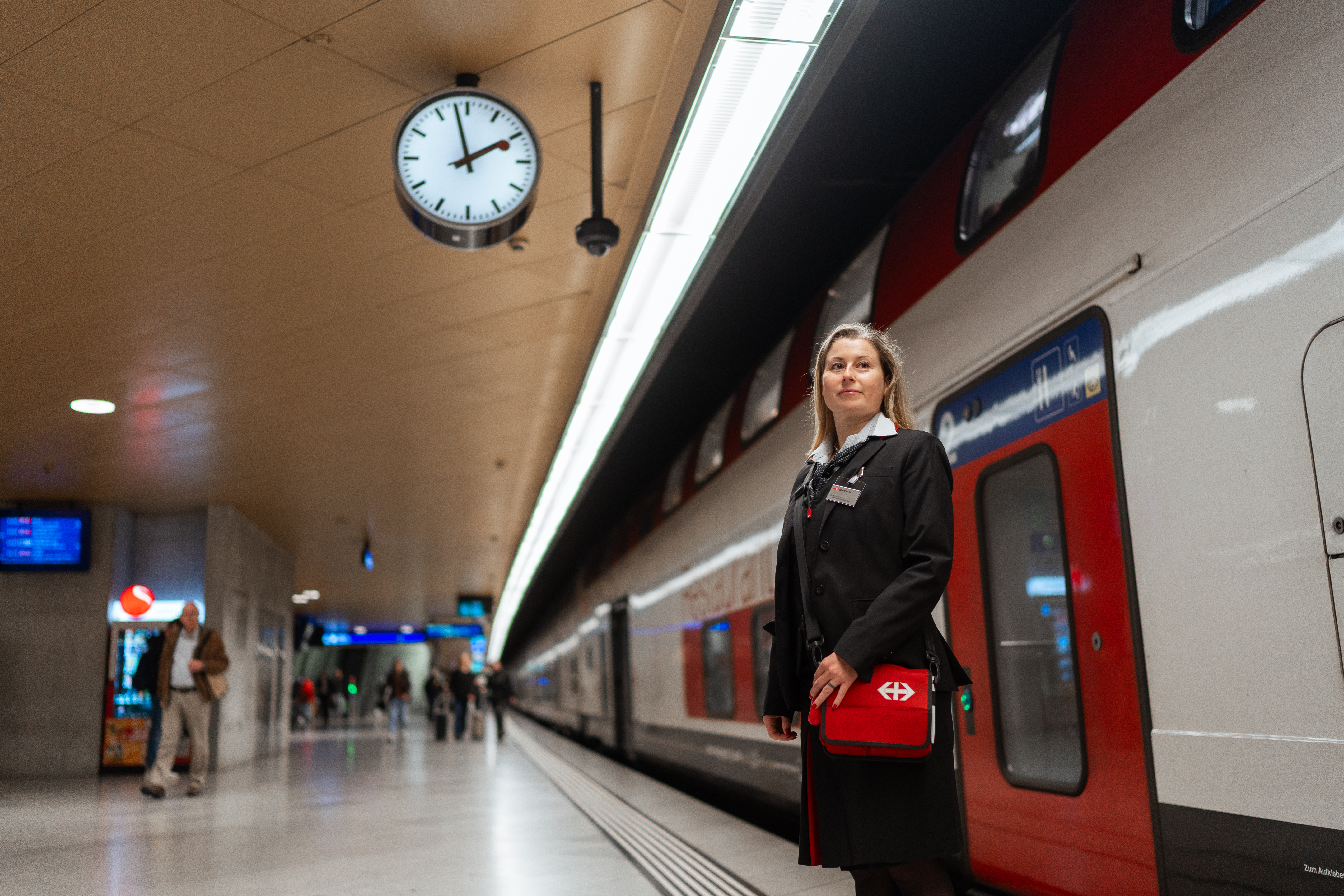 Montagmorgen, Zürich HB. Jessica Heinzerling steht neben dem Zug auf Gleis 31. Ein junger Mann hastet von der Rolltreppe her auf sie zu. «Excuse me, is this the train to Berne», fragt er ausser Atem. Die Zugbegleiterin der SBB nickt. Der Mann steigt ein. Wenig später – nachdem sie dem Lokführer das Signal zur Abfahrt gegeben hat – tut sie es diesem gleich und macht sich auf ihre erste Runde durch die 16 Wagen des Intercity-Zuges.